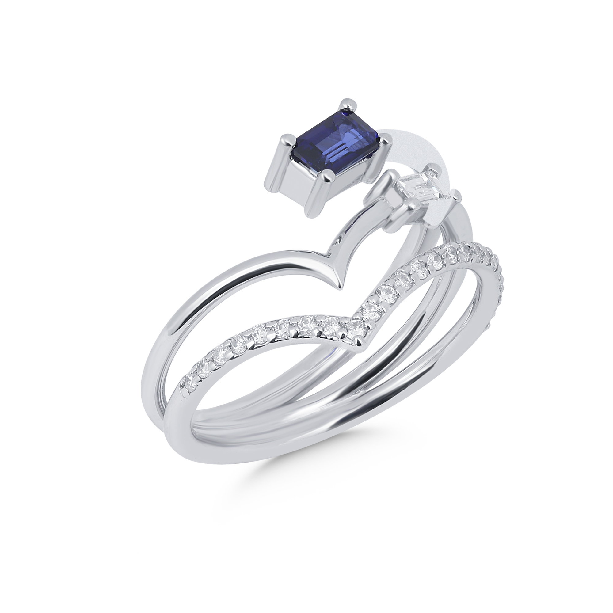 Zarif ve Modern: Beyaz Altın Pırlantalı ve Safir Taşlı Yüzük