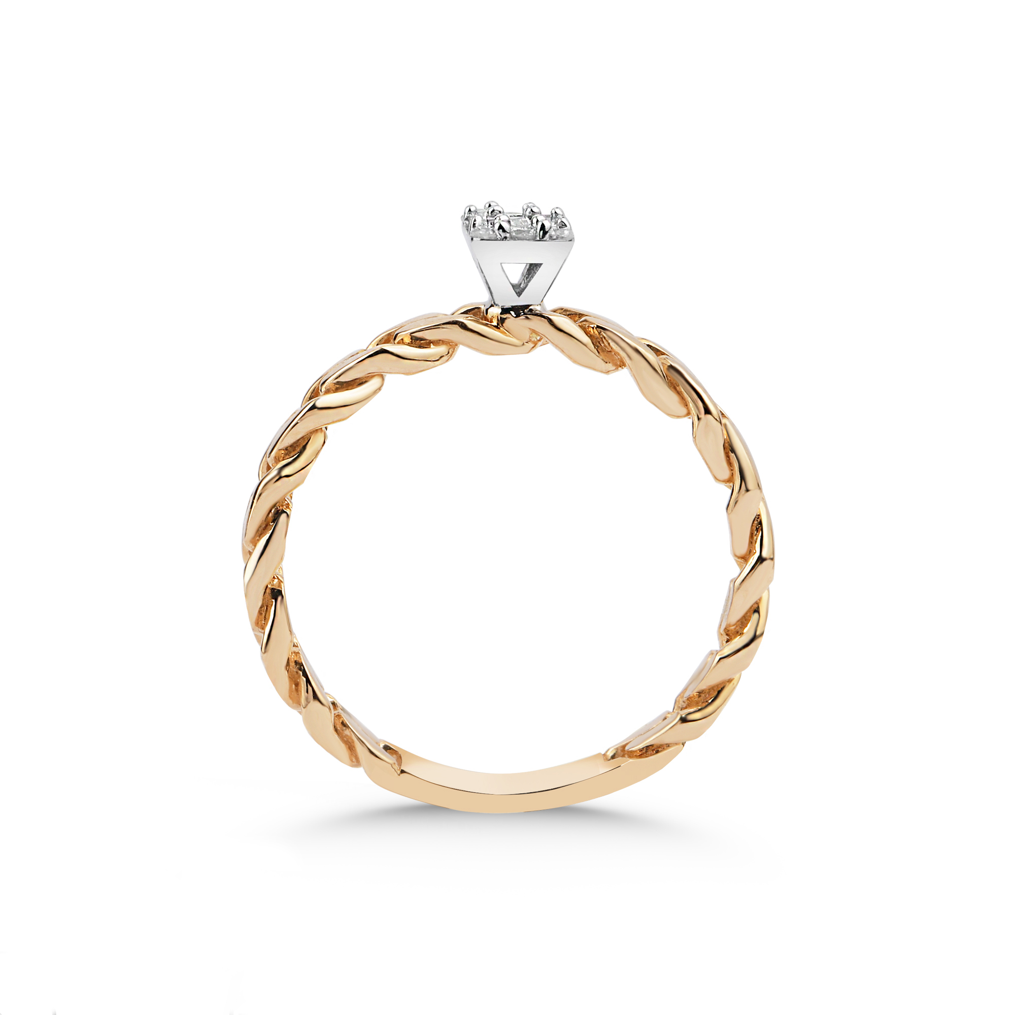 Zamansız Zarafet: Rose Altın Zincir Detaylı Baget Kesim Pırlanta Yüzük
